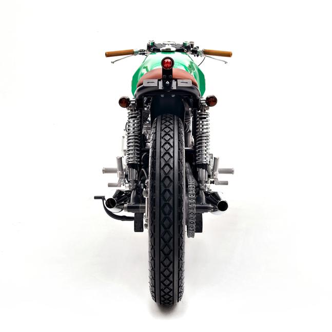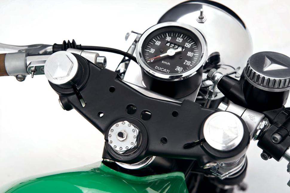 Последними установленными деталями стали ручка газа Tommaselli, клип-он Tarozzi и комплект подножек и ножных органов управления. Затем топливный бак был покрашен в роскошный, яркий зеленый цвет, а металлические детали были отполированы.