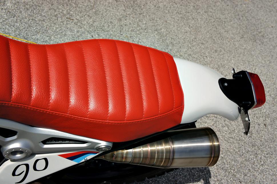 Седло обито кожей красного цвета, который максимально приближен к оригинальному цвету мотоцикла G/S (Луи также планирует производить его в коричневом и черном цветах). Заднюю часть байка завершают боковые алюминиевые панели, которые будут воспроизведены в углеволокне для массовых продаж.