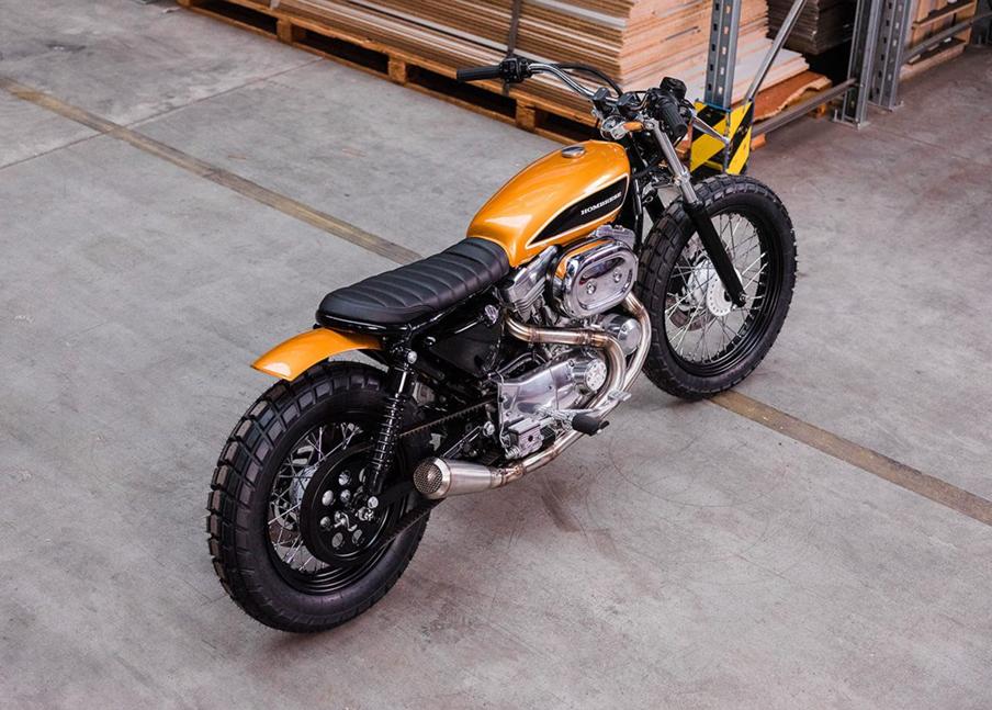 Для проекта Уве выбрал модель Harley Davidson Sportster 883. Его линии просты и лаконичны, напоминают творения лучших японских мастерских. Сам Уве говорит, что в его кастоме соединились сразу несколько стилей. Еще по первым изображениям мы пытались разгадать, как же мастеру удалось придать мотоциклу такую идеальную осанку. Свою работу он начал с того, что тщательно изучил раму. Было принято решение приподнять ее сзади и опустить спереди.