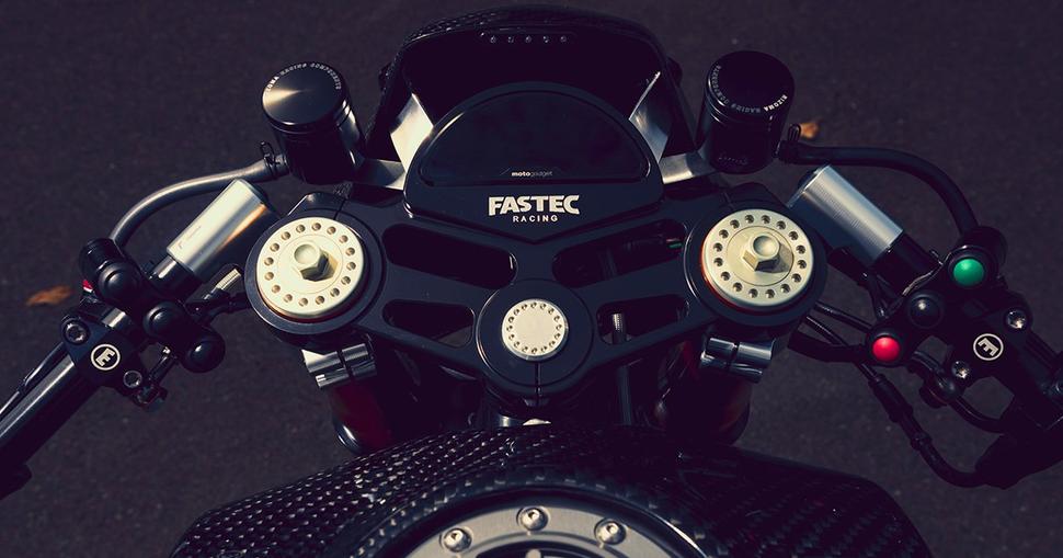 Доделка заключалась в установке целого набора элементов Motogadget, клипонов, подножек, зеркал и поворотников от Rizoma, а также диодной фары Highsider. Затем - литий-ионный аккумулятор от Antigravity и пульты от Reese Racing.