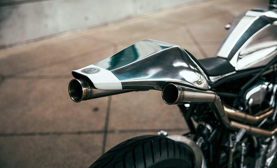 Пара нержавеющих выпускных патрубков проходят к хвосту, напоминая выхлопы классических аппаратов MotoGP.