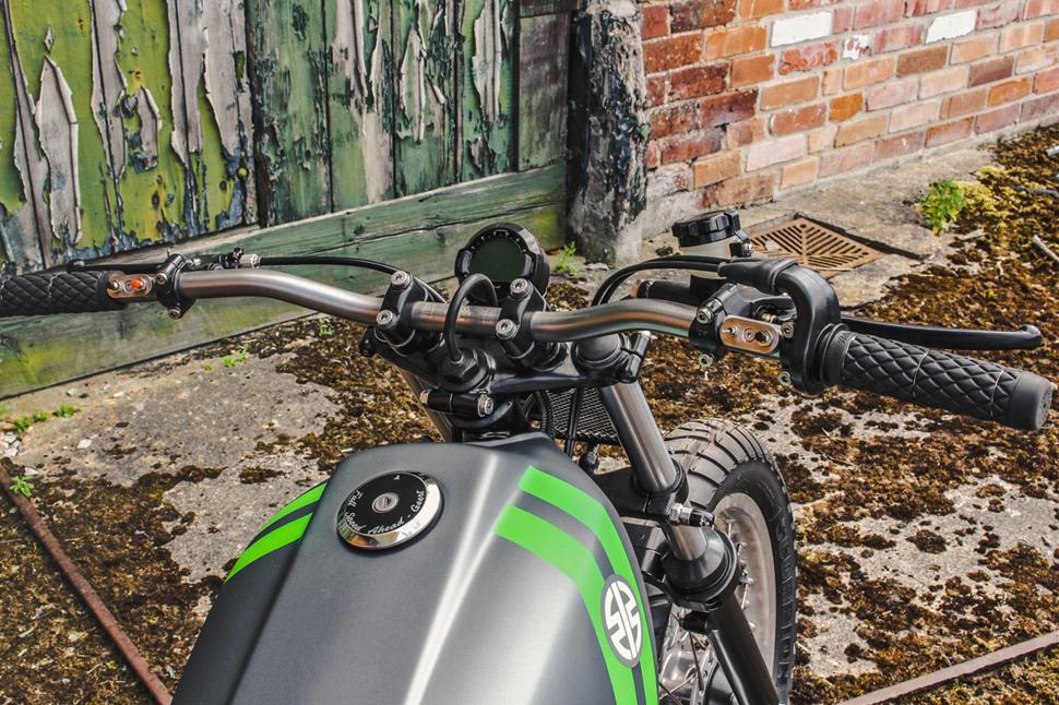 Идея состояла в том, чтобы сделать компактный стрит скремблер с широким и низким рулём и ощущением флэт-трекера.