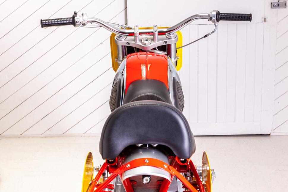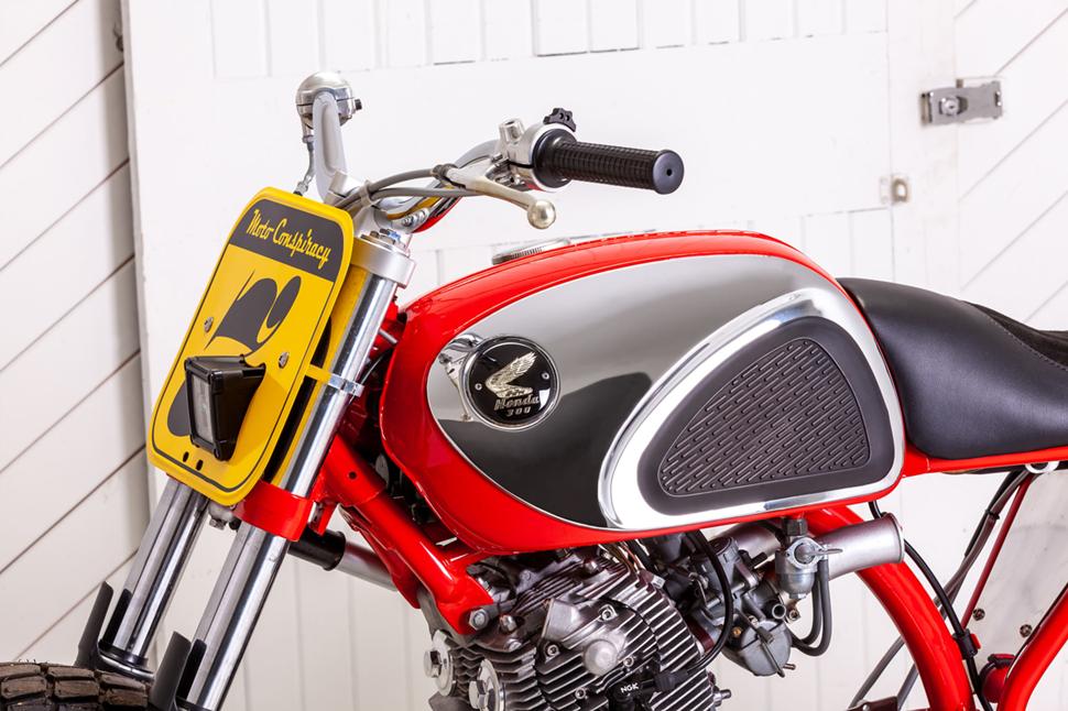 Если вы вдруг не знаете, CYB - это просто CB77 с установленным заводским гоночным комплектом, который на тот момент у был в продаже у дилеров Honda. Типа сегодняшних комплектов HRC, - рассказывает Исайя. -Вот тогда-то я и подумал: раз уж Honda продавала рейсинговый комплект, то давайте-ка представим, что существовал и флэт-трекинговый комплект для того же байка? И почему бы мне не сделать такой байк, какой Honda могла бы предложить в те годы энтузиастам грязевого овала?.