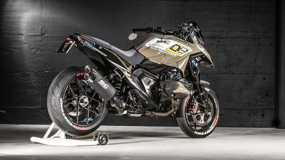 Крышка бензобака была окрашена чёрной бензостойкой краской, и, чтобы объединить весь дизайн мотоцикла, было решено обернуть выхлопные трубы, чтобы они не торчали как срамные части большого быка. Но на этом всё не заканчивается: чтобы помочь тяговитому оппозиту раскрыть свой потенциал, был установлен глушитель SC Project Black Edition с обманкой клапана в выхлопе - чтобы ЭБУ вообще ничего не заподозрило. Ноги райдера стоят на качественных подножках с рычагами от Gilles Tooling, а на руле стоят регулируемые короткие рычаги из каталога BMW.