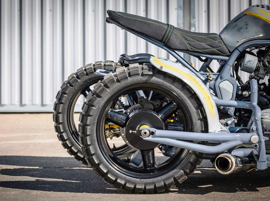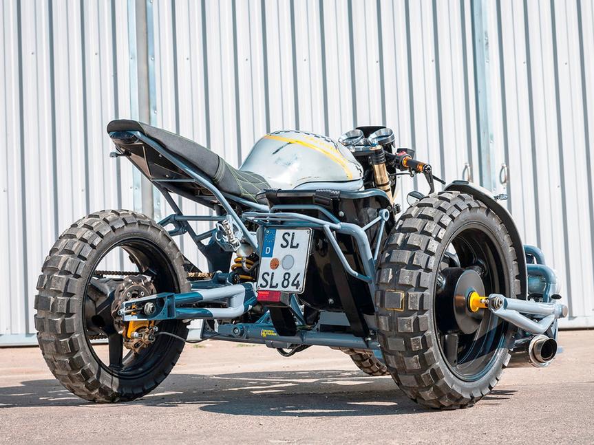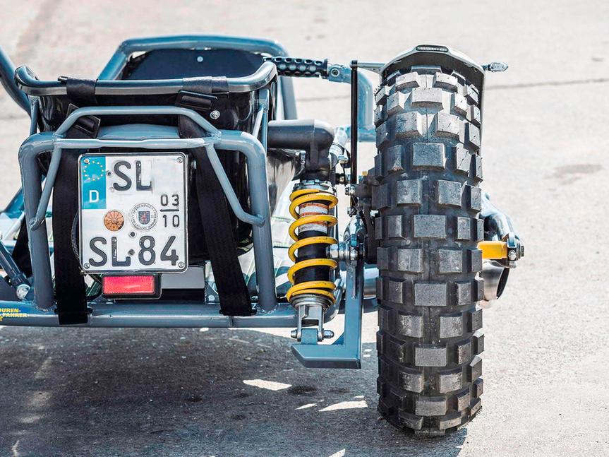 Как любитель больших скоростей, Марко надеялся, что его детище сможет развивать до 180км/ч, так что двигатель Suzuki Bandit был оснащён тюнинговыми карбюраторами и кастомным впускным трактом. Затем по плану был полный выхлоп, где выпускные трубы из нержавеющей стали идут по бокам к гибкому соединению, затем пересекают днище коляски и испускают пламя из глушителя в гоночном стиле.
