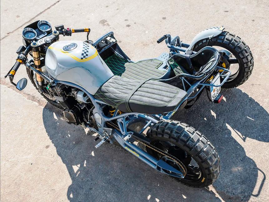 Suzuki Bandit был оснащён армированными нержавеющей сталью масляными магистралями, которые ведут к радиатору, спрятанному за решёткой коляски. Разумеется, такой тщательный подход был вознаграждён: мотоцикл в итоге прошёл положенный техосмотр, затем получил номерной знак, и Марко со своей новоиспечённой женой Софией на стиле поехали на вечеринку по поводу свадьбы.