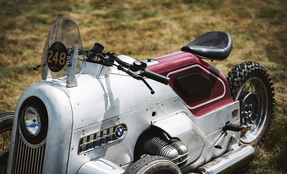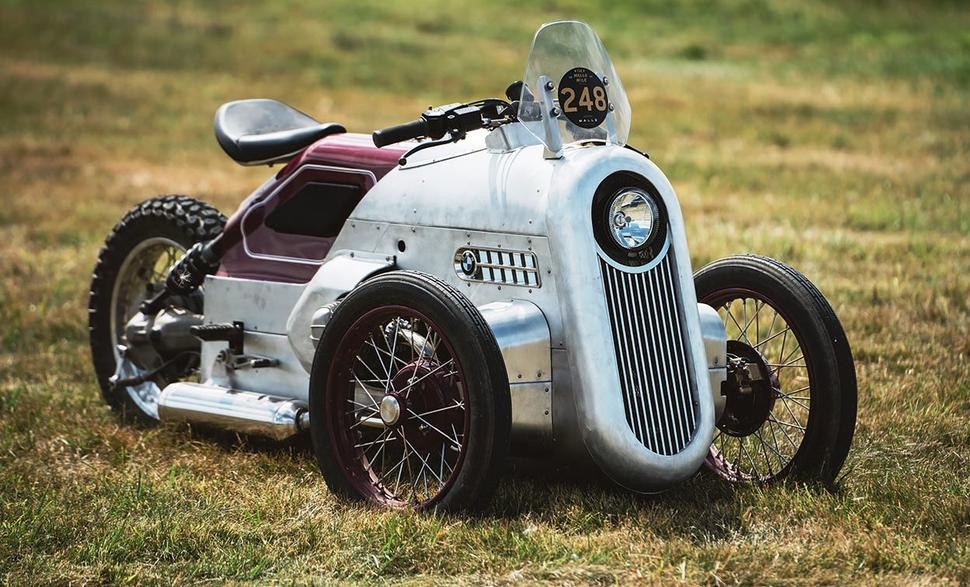 Malle Mile - это мероприятие, до краёв наполненное причудливыми мотоциклами. Но если и есть что-то, что может удивить даже прожжёных поклонников кастом-культуры, так это трёхколёсный BMW R 100, одетый в винтажный автомобильный кузов.