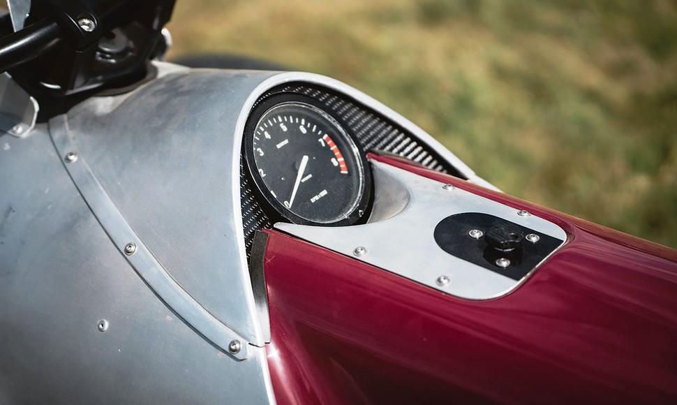 Тим сохранил оригинальные компоненты вроде пультов и тахометра, тем самым придав мотоциклу винтажности. Тахометр, правда, переустановлен в выпуклую приборную панель наверху бензобака, а оригинальный ключ BMW находится прямо под ним. Если вам стало интересно, где находится крышка бензобака, то она между рулём и ветровиком.