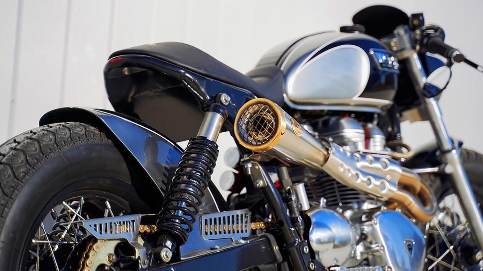 Несмотря на довольно существенную переделку, этот Triumph Bonneville 865 успешно проходит техосмотр и поэтому абсолютно легален на дорогах. Об этом аспекте кастомайзеры нередко забывают, но для компании по аренде мотоциклов это, конечно, важно.