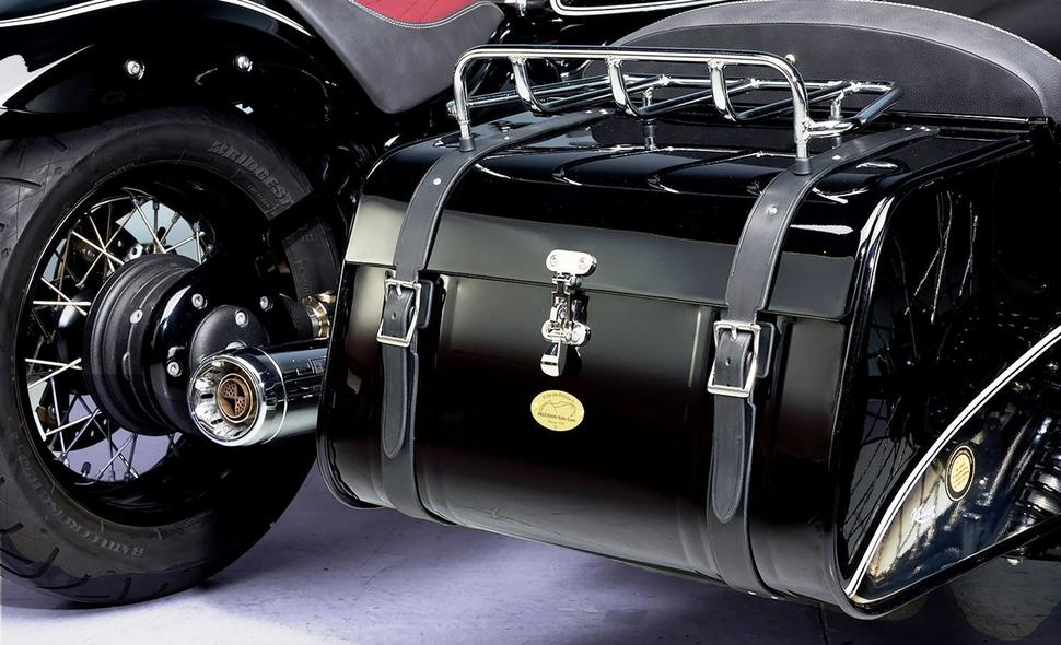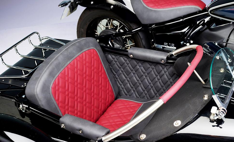 Как и во всех своих проектах, команда создала шасси и люльку с нуля в своей мастерской, что в юго-восточном пригороде Парижа. Процесс занял около 150 часов, и результат вышел невероятно элегантным: плавные обводы коляски облачены в тот же коктейль из чёрной краски, хромированных элементов и белой окантовки, что украшает мотоцикл.