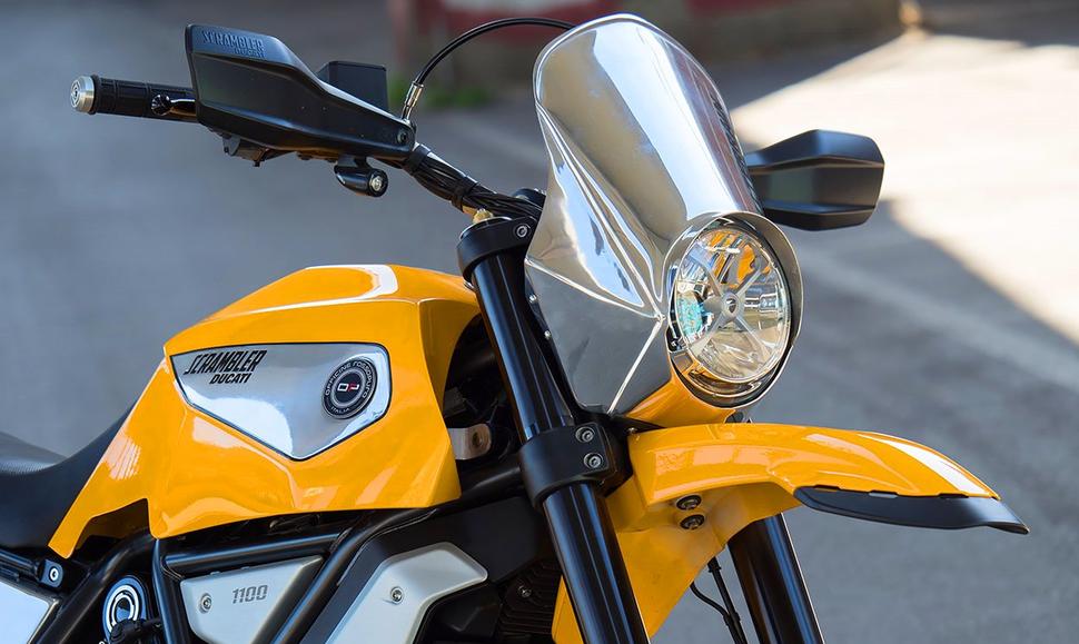Семейство Ducati Scrambler оказалось настолько популярным и своевременным, что итальянцы даже объявили его саб-брендом и создали в рамках него довольно обширную линейку из более или менее удачных моделей. Одним из самых интересных и весёлых Scrambler-ов, соответствующих своему громкому имени, оказался вариант Desert Sled, действительно отлично подходящий для езды по пустыням. А наиболее дорожным вариантом по праву можно назвать Scrambler 1100 с более-чем-литровым мотором, но практически не оснащённый под бездор. А что если совместить эти две модели в одну?