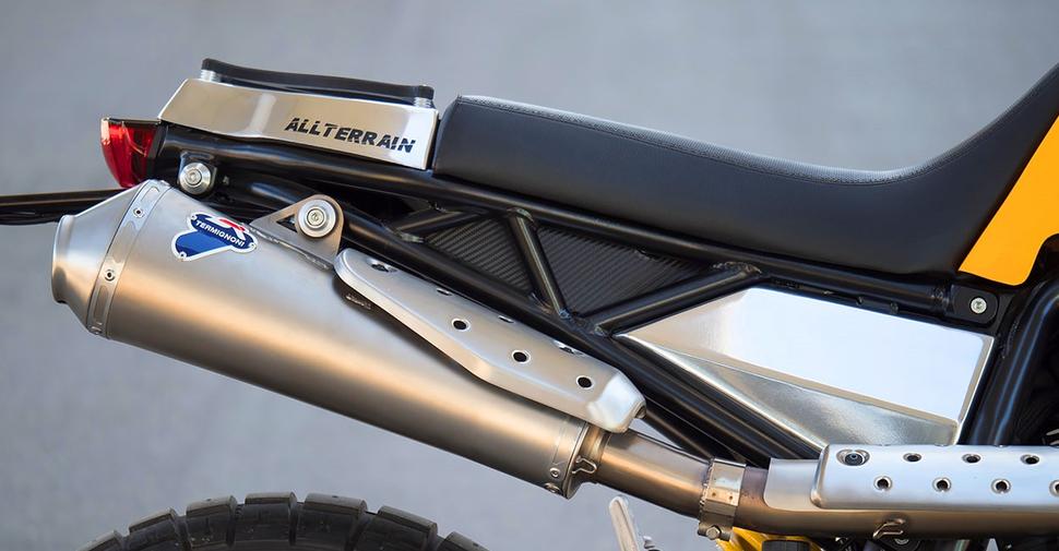 С выхлопом Филиппо тоже пришлось поиграть: Scrambler был оснащён серийным выхлопным трактом Termignoni, который не встал на переделанный подрамник. Так что пришлось переделать патрубки для переноса глушителя выше.