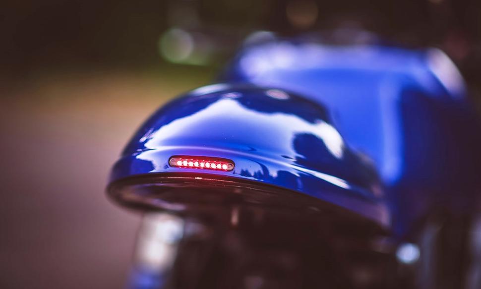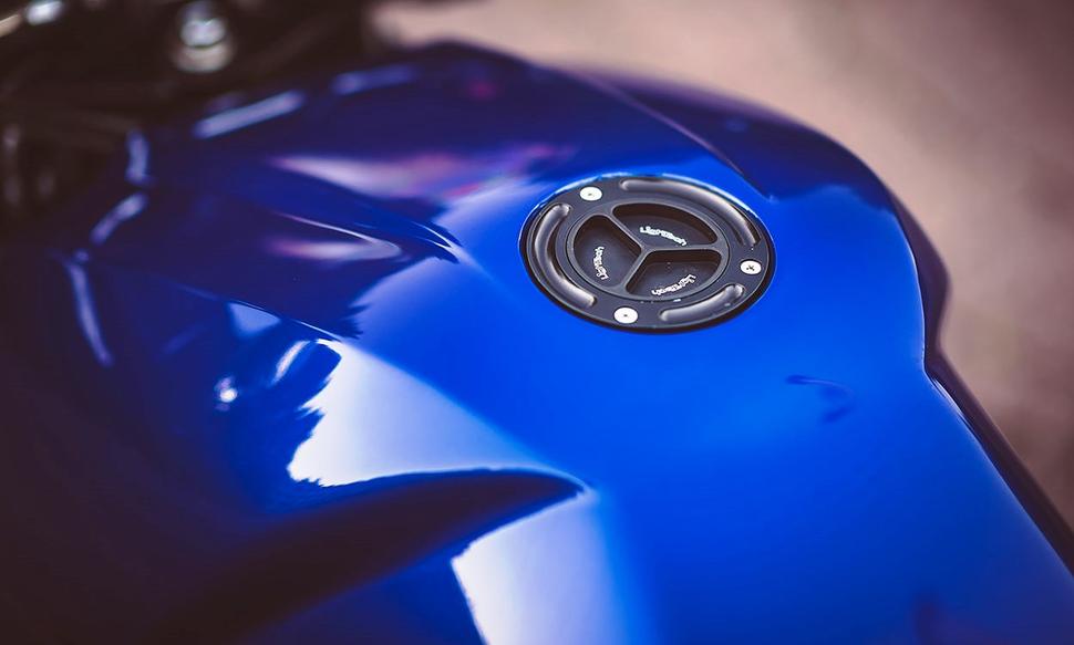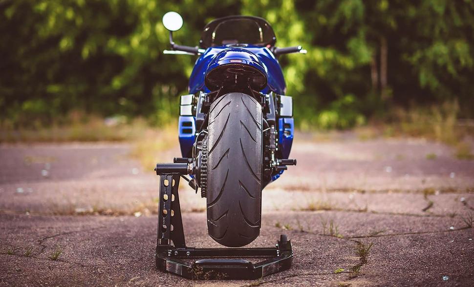 Остальная часть проекта представляет собой тщательно продуманный список дополнений. Аки установил армированные нержавейкой тормозные магистрали, модифицированный радиатор Yamaha YZF1000 Thunderace, подножки от Suzuki Hayabusa заднего расположения. Ещё - крышку бензобака Lighttech, дрэгстерный руль Fehling, диодные поворотники Ermax и спидометр Motogadget. Сдвоенный выхлоп - тоже от другого мотоцикла, хоть и выглядит как родной. На самом деле он от Kawasaki Z1000 и установлен на кастомных выпускных патрубках, прячущих глушители под брюхом мотоцикла.