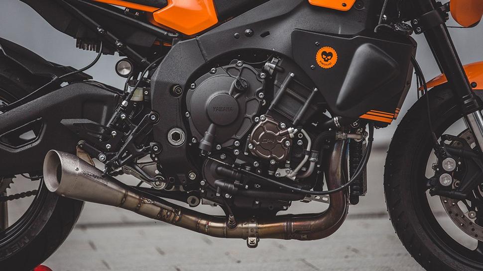 Создавая свой кастом, мастера думали не только о красоте, но и о практичности. Оригинальный Yamaha MT-10 отлично держит дорогу, его управляемость на высоте, поэтому дорабатывать геометрию, подвеску или тормоза практически не пришлось. Парни лишь обули мотоцикл в резину Metzeler для лучшего сцепления. А вот, что касается выхлопной системы, то над ней мастера как следует потрудились. Они вручную изготовили коллекторы из нержавеющей стали и установили глушитель Spark. Оставалось лишь несколько штрихов, например, руль Rizoma, грипсы Renthal и органы управления Accossato. Все задние крепления были выкрашены в черный.
