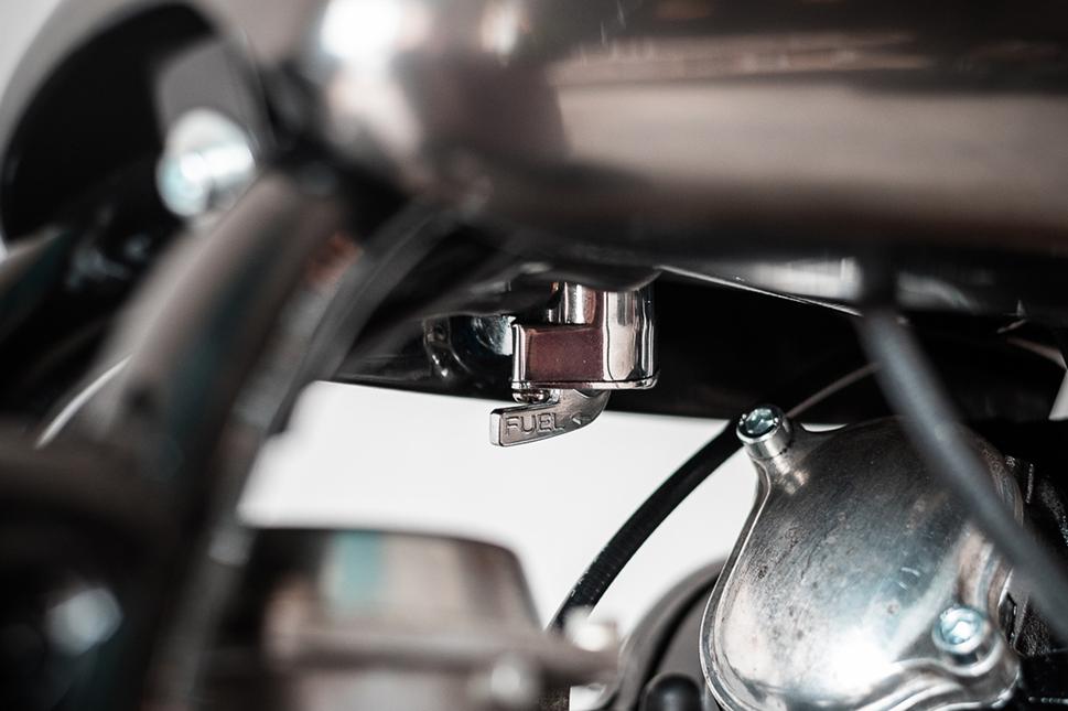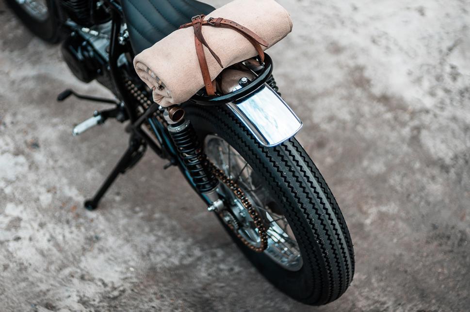Над топливным баком пришлось, как следует, поработать, чтобы все линии были четкими и аккуратными, спускной краник был намеренно спрятан. В оригинальной сборке Yamaha SR250 SE довольно высокий мотоцикл, поэтому следующим этапом работы было укоротить вилки на 7,5 см. На байк были установлены амортизаторы YSS Eco-Line.