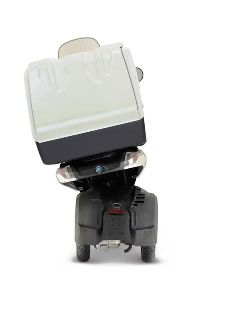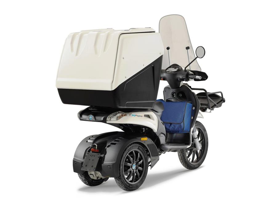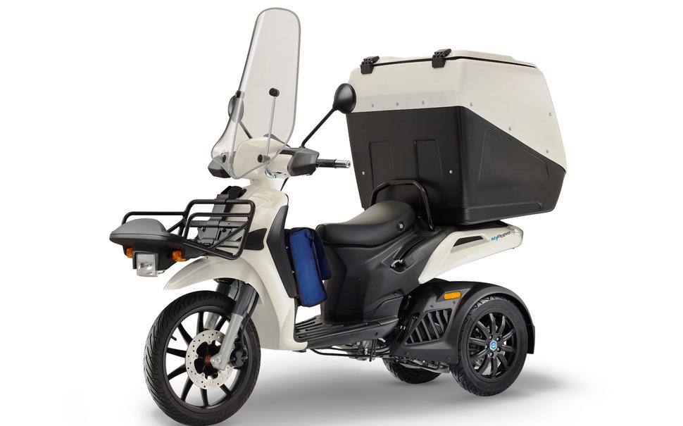 Взять, к примеру, Piaggio MyMoover, причудливый грузовой скутер с трёхколёсной компоновкой. MyMoover разработан специально для доставки грузов и оснащён массивным задним багажным отделением. Сзади у него два колеса, а спереди одно, и он наклоняется в повороты контррулением точно так же, как стандартный скутер, при этом оба задних колеса остаются в контакте с дорогой. Piaggio утверждают, что эта компоновка даёт ему управляемость и устойчивость скутера при дополнительной грузоподъёмности. Кстати, задний багажный отсек может вместить до 261 литра груза весом до 95кг - весьма неплохо для такого малыша.