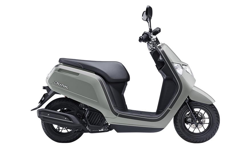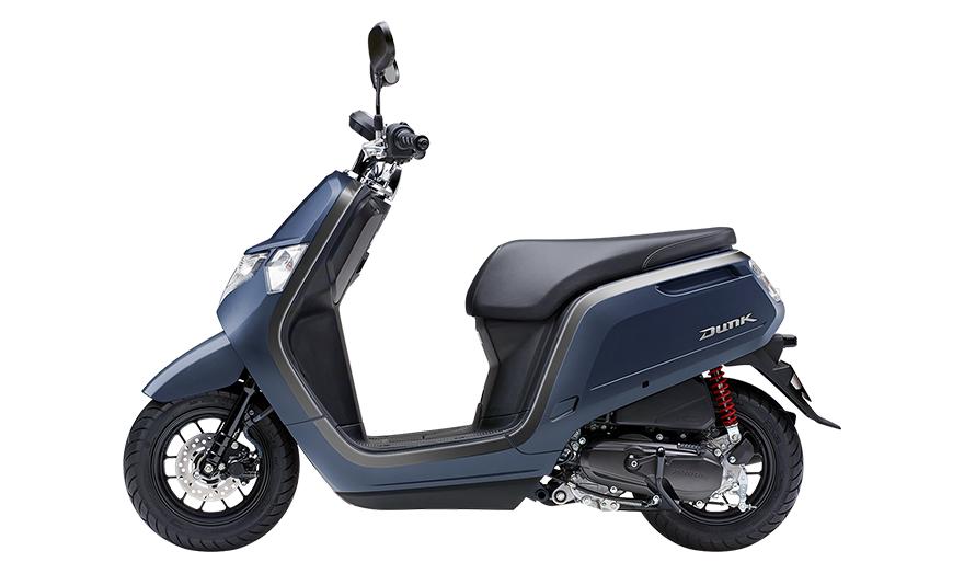 Эта модель появилась ещё в 2014 году, а концепция Dunk проста и незамысловата: простой утилитарный скутер на современной базе. Малыш пришёлся очень по вкусу, и несмотря на выпуск только для японского рынка, потихоньку расходится по другим странам. А недавно Honda официально продлили Dunk на 2022 модельный год для японского рынка. Три расцветки - Matte Jeans Blue Metallic, Pearl Deep Mud Gray и Matte Ballistic Black Metallic - украшают этих симпатичных крошек. Помимо новых расцветок Dunk остался прежним: 49-кубовый четырёхтактный одноверхневальный одноцилиндровый мотор с жидкостным охлаждением, выдающий на 8000об/мин 4,5лс, с бензобаком в 4,5 литра, с нарочито простой и нейтральной внешностью, но при этом внушающей ощущение качественной, хоть и не слишком дорогой вещи. Большая фара интегрирована в облицовку, простой трубчатый руль позволяет установить какие угодно мотоаксессуары, вполне полноценная приборная панель, отображающая всё, что нужно на ходу, перчаточный ящик, встроенный в передний щит, оснащён 12-вольтовой розеткой для зарядки телефона и других устройств, а в открытый бардачок справа можно поместить что-нибудь нужное во время поездки.
