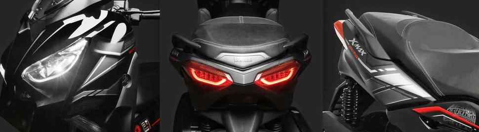 Как и большинство современных скутеров, Yamaha XMAX оснащён бесступенчатой вариаторной трансмиссией на клиновидном ремне. Спереди у него стоит 15-е колесо, сзади 14-е, а весит бразилец 179кг. Среди прочих особенностей Yamaha отдельно подчёркивает дизайн, а именно - тот факт, что он выиграл премию Red Dot Design Award. В смысле, обычный вариант XMAX, а не Darth Vader Edition.