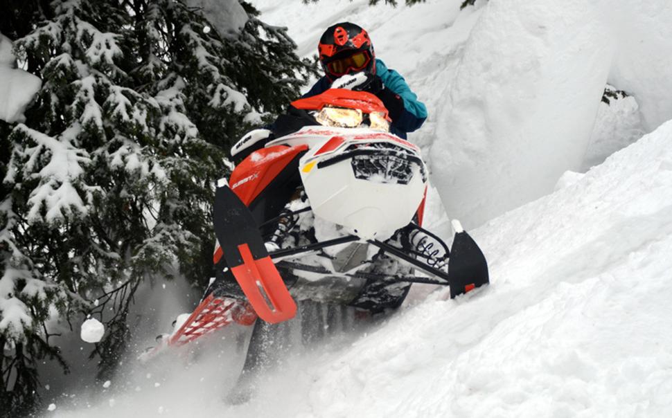 Снегоход Ski-Doo Summit X Expert очень неплохо чувствует себя среди деревьев, сбалансирован при езде на равнине и отлично ведёт себя в оврагах. На нём не сложно ездить, наоборот, при всей его серьёзности и “экспертности” он очень лёгок и удобен. Он не перекинет вас через руль при попадании в овраг и не завязнет в снегу после прыжка на небольшой кочке. Ski-Doo взяла Summit X, практически идеальный горный снегоход, и сделала его ещё лучше.