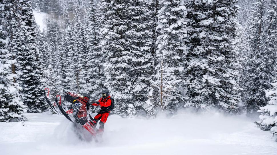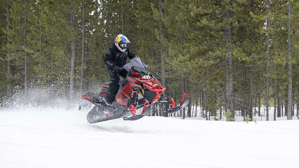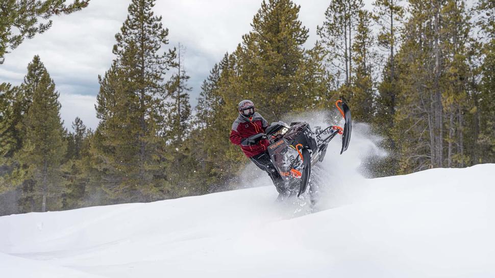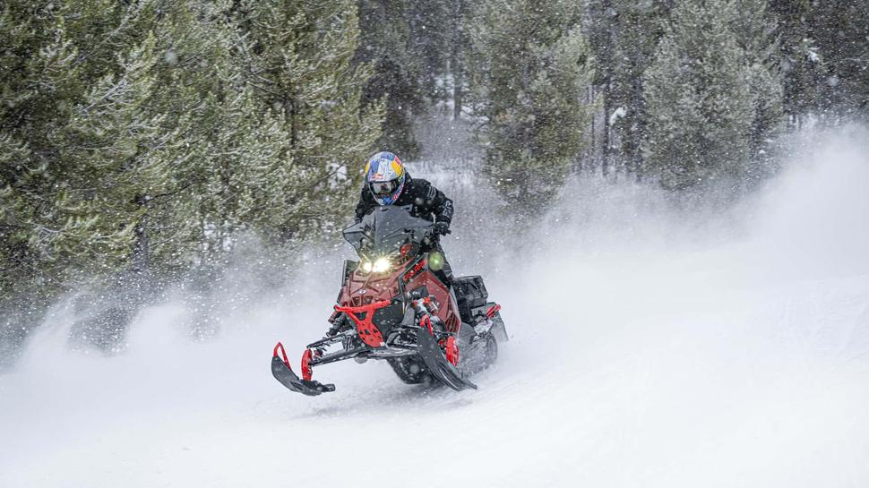 И, конечно, компания не забыла о мотоциклистах, обновив серию сноубайков Timbersled. Одна из главных проблем в этом виде спорта - это ограничение скорости гусеницы и сохранение полного контроля над сноубайком. Ограничительная стропа в подвеске позволяет, по словам Polaris: