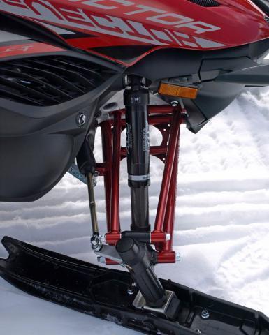 Производитель предполагает, что владельцы Vector X-TX 1,75 LE будут проводить больше времени на бездорожье, поэтому снегоход оборудован амортизаторами премиум-класса. На двойных А-образных рычагах передней подвески установлены амортизаторы Fox Float 3, они обеспечивают 216 мм вертикального хода. На задней подвеске SingleShot 146 используются увеличенные амортизаторы Fox Float 3 XV, задняя подвеска «ходит» на 350 мм.
