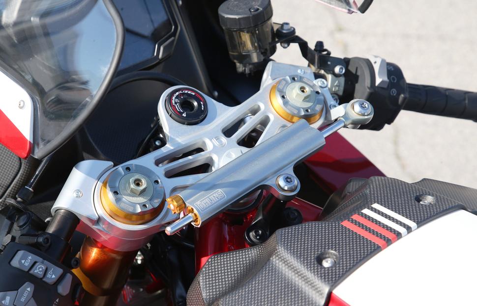 Комфорт и управляемость подвесок Ohlins на высоте - лучше, чем у любого из предыдущих Bimota. Он идеально держит траекторию, заложенный на скорости, но при этом легко меняет направление - рулится легко, но не дёргано. Можно мощно тормозить в апексе поворота, и при этом вилка продолжает скрадывать любые неровности, несмотря на неизбежную просадку из-за переноса веса. Заднее колесо на открытии газа держится за дорогу ничуть не хуже, в том числе и по неровностям. Редко когда мотоцикл подскакивал или козлил, в основном подвески скрадывали все особенности асфальта, несмотря на удивительно малый ход заднего колеса. Единственное, когда возможности передней подвески удалось слегка превысить, это на спуске с высокого холма по плохому асфальту, здесь вилку уже начало потряхивать, но не до складывания или пробоев.