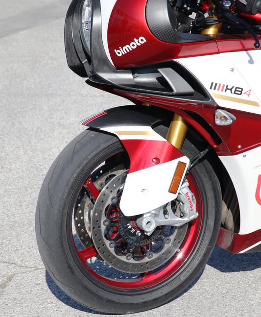 Но Bimota славятся в конечном счёте своей управляемостью, и в случае с KB4 она оказалась столь же внушающей уверенность, как и любые традиционные (то есть, не Tesi) конструкции Маркони. Этот конструктор всегда умел найти идеальный баланс управляемости, независимо от того, вокруг какого двигателя он в этот раз обернул раму. Помимо лёгкости KB4, отличная рулёжка была достигнута во многом благодаря работе гонщика-испытателя Bimota Джанлуки Галассо, который работал вместе с Маркони над оптимизацией конфигурации и настроек шасси в течение последних 35 лет, и здесь Джанлука выполнил свою часть работы наилучшим образом.
