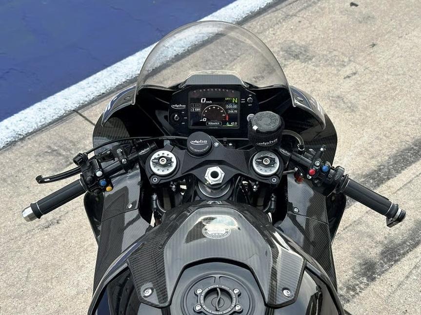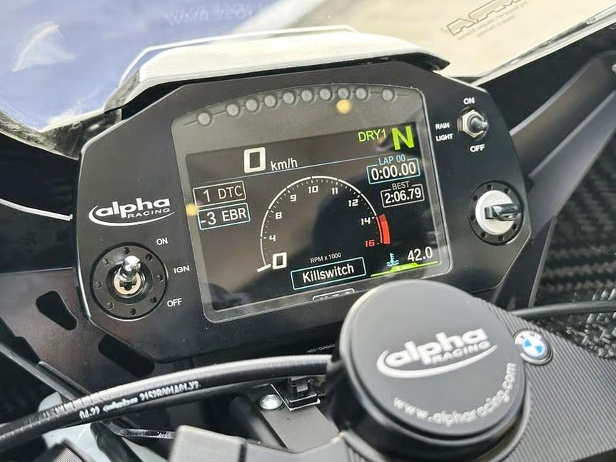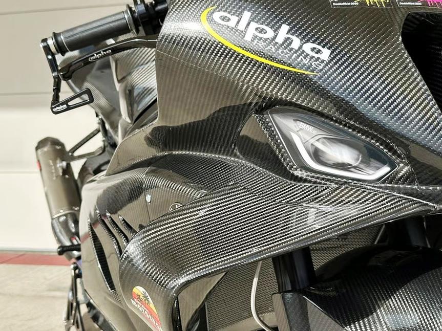 Это, кстати, столько же, сколько производит стоковый европейский дорожный M 1000 RR. Но разница в том, что версия alpha Racing - чисто трековая и не подпадает под действие эконорм по выбросам и шуму. В общем, это мотоцикл, который рулится примерно как новичковый Ninja, но имеет соотношение мощности к массе, как у Toyota Camry с примерно 1400 силами.
