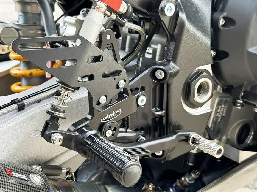 Яркий пример - это тормозная система, которая иллюстрирует сам подход. Стандартный BMW M 1000 RR и сам по себе очень серьёзный мотоцикл, так что его штатные суппорта, вошедшие в комплект alpha Racing, никого не удивят. На них даже нанесены фирменные BMW-шные M, а изготовлены они Nissin. Но на этом сходство тормозных систем заканчивается.