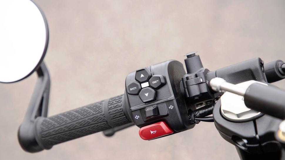 А вот пятидюймовый цветной TFT-дисплей - вполне новый и современный. Он яркий, чёткий и продуманный. Главный экран легко читается беглым взглядом: на нём имеется полукруг стрелочного тахометра, цифровой спидометр, два показания температуры (двигателя и воздуха), часы, шкала топлива, запас хода, а также информация о давлении и температуре воздуха в шинах. Показатели мощности и крутящего момента тоже отображаются в реальном времени, что, несмотря на некоторую избыточность, определённо добавляет удовольствия от езды.