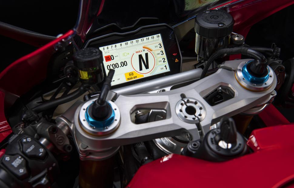 Ducati Panigale V4 2022 получит обновлённую бортовую электронику, оснащённую четырьмя режимами езды. Режимы езды без затей названы по характеру мощности: Полная, Высокая, Средняя и Низкая. В режиме Полной мощности двигатель работает без ограничений на любых передачах, кроме первой, а в режимах Высокой и Средней мощности используются специально рассчитанные топливные карты для каждой из шести передач. Режим Низкой мощности служит для дорожной езды - в нём пиковая мощность двигателя ограничивается 150 лошадьми, а отклик на газ приглушен до комфортного уровня.