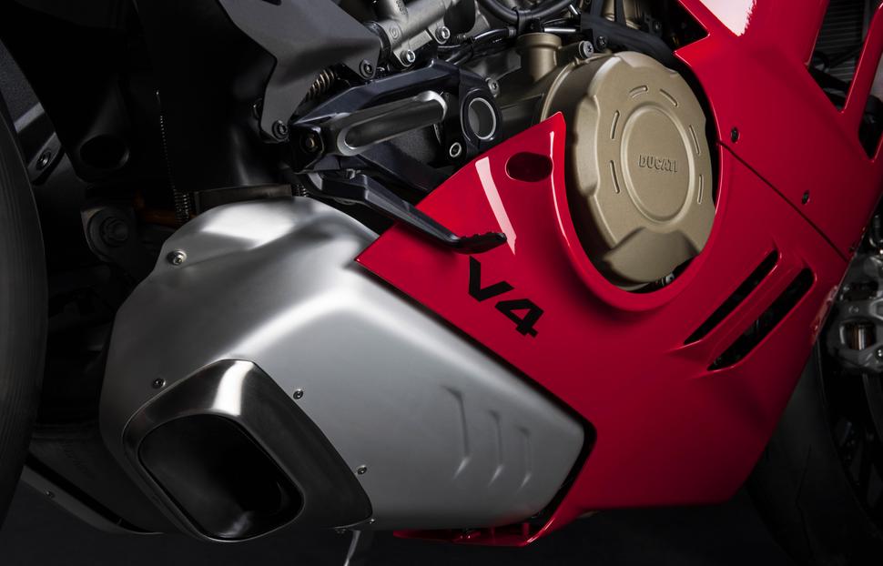В каталоге заводских аксессуаров появился новый выхлоп Akrapovic для Panigale V4. В полный выпускной тракт входят в том числе задранные вверх глушители, а прирост производительности при его установке составляет 12,5лс и 7Нм, а кроме того, достигается снижение веса мотоцикла на 5кг.