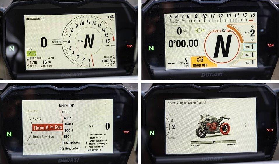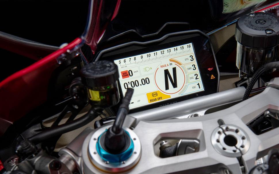 Одно из значительных улучшений Panigale V4 по части электроники - это карты мощности ЭБУ. Ducati ещё тщательнее продумали каждый из четырёх режимов мощности (Низкая, Средняя, Высокая и Полная) и даже разработали свой характер отклика под каждую передачу в зависимости от выбранного режима езды. Видите ли, как оказалось, разная пиковая мощность на разных передачах недопустима по требованиям экологических норм, а вот характер отклика и тяги менять можно.