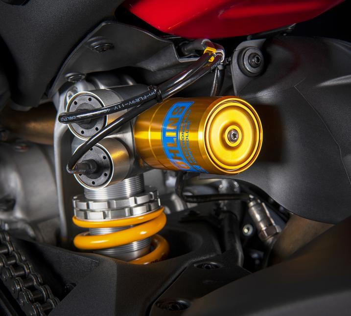 Газонаполненная вилка Ohlins NPX с 2022 года украшает собой переднюю часть Panigale V4 S. Она имеет чуть более мягкие пружины. Новая вилка работает в тандеме с моноамортизатором Ohlins TTX36 (таким же, как в прошлой версии), и обе подвески подключены к электронной системе управления на основе событий - то есть, обеспечивающей динамические реакции на поведение шасси, когда райдер может в меню настроек мотоцикла, например добавить/убавить жёсткости вилки на торможении вместо ручных регулировок на самих компонентах подвесок. Есть также и фиксированный режим, в котором любые динамические реакции отключены, то есть, настройки сглаживания подвесок выбираются в меню мотоцикла и не меняются на ходу.