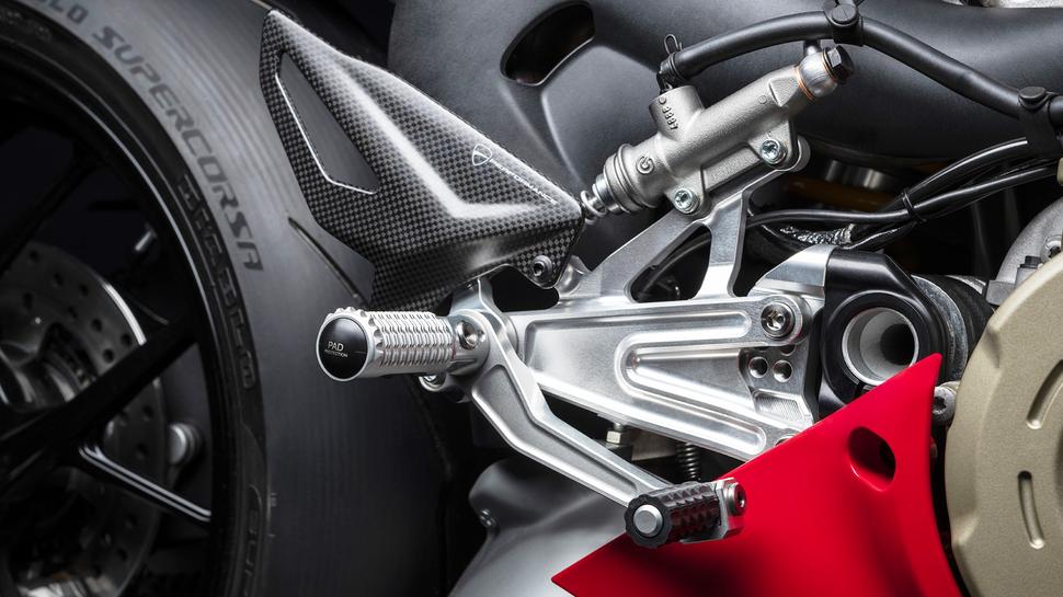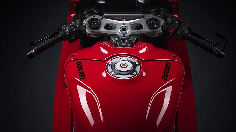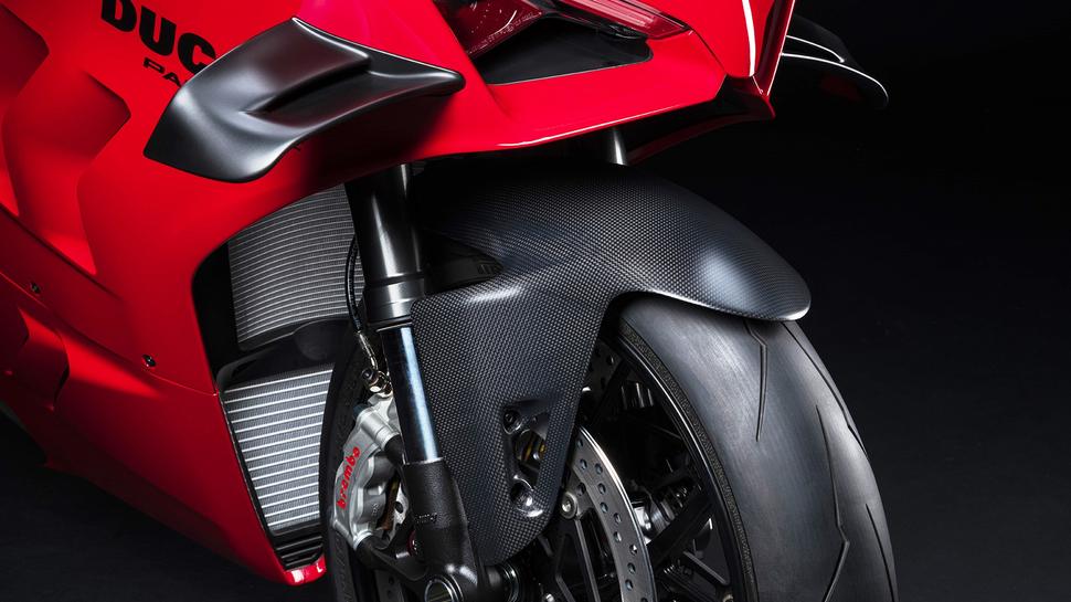 Самые очевидные и явно заметные изменения - это аэродинамические крылья Panigale, ставшие в версии 2022 года меньше, но при этом обеспечивающие прежнюю прижимную силу - 4кг на сотне и почти 37кг на 300км/ч. Дополнительные воздуховоды в обтекателе увеличивают обдув системы охлаждения, седло стало более плоским и с меньшим наклоном, а бак около седла стал чуть шире, одновременно увеличившись в объёме на литр.