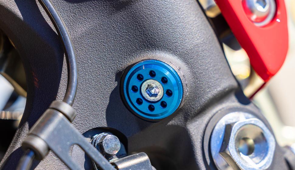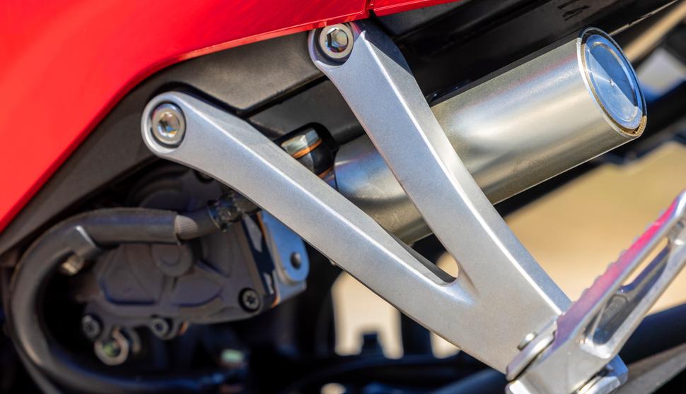 Она лёгкая, 186 килограммов с 18 литрами бензина в баке (который, кстати, в основном располагается под сиденьем), и это позволяет подвескам работать максимально эффективно - только совсем уж большие кочки достигают сознания. Тормозит буквально одним пальцем благодаря явно избыточному переднему тормозу (вообще как так вышло, что на Honda стоят Tokico?), а информативность передней шины просто зашкаливает.