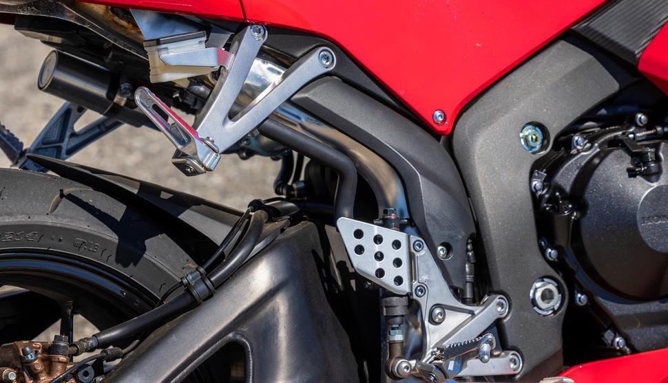 Коробка настолько хороша, что для переключения вниз в таких поворотах практически не нужно выжимать сцепление, достаточно небольшой перегазовки. Нижние передачи у CBR всегда были дохловаты, но всё равно при торможении приходится опускать передачу, а то и две. В отличие от большинства литров, 600-кой управлять увлекательно, потому что правильная техника вознаграждает быстрой и техничной ездой. Нужно держать стрелку тахометра (почему-то более информативного, чем большинство TFT-дисплеев) выше 7000, и в этой зоне CBR чертовски бодра. Диностенд под такой малышкой показывает около 100 лошадей на 12900об/мин и 60Нм на 10900, и, хотя литры выдают больше, но покрутить бодрую 600-ку - это совершенно особый кайф.