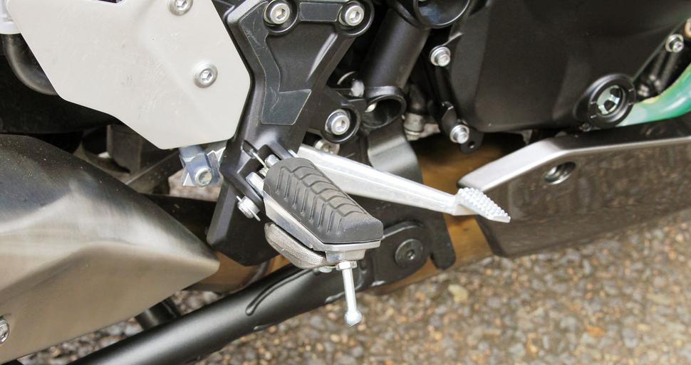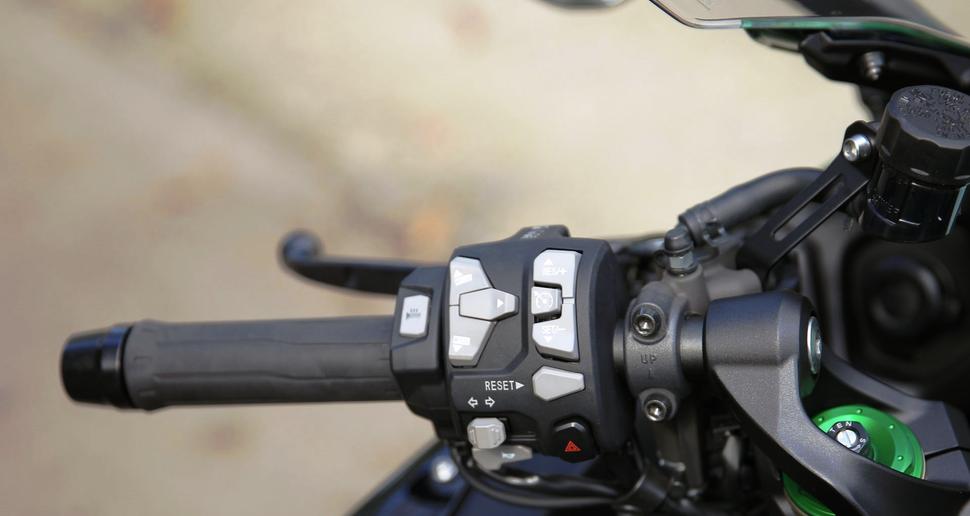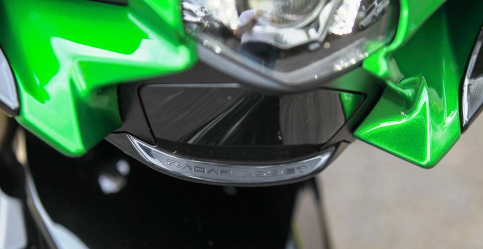 А задний радар просто чертовски крут. Раньше приходилось крутить головой, прежде чем перестраиваться, и то машины порой будто возникали ниоткуда. Задний радар же определяет, нет ли какого-нибудь попутного объекта в слепой зоне, и покажет маленький оранжевый треугольник в зеркале заднего вида. Аналогичная функция в автомобилях используется уже много лет, но Kawasaki первыми применили её в мотоцикле. Единственная проблема с задним радаром - в том, что его сенсор находится в громоздком креплении номера, которое многие предпочитают заменить на что-нибудь посимпатичнее.