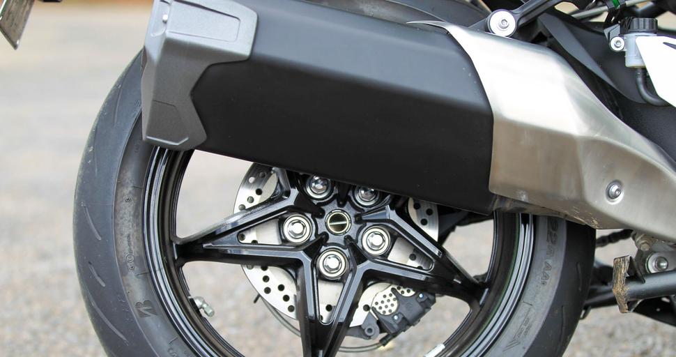 Задняя подвеска Kawasaki Ninja H2 SX весьма впечатляет. Настолько, что превосходят её только мотоциклы с активной электронной подвеской, и остаётся только искренне похвалить Kawasaki за задний моноамортизатор. На трассе к нему никаких вопросов, и даже активная езда в поворотах не выявила никаких сложностей - кто бы мог подумать, что стоковые настройки могут быть настолько хороши! Конечно, активные подвески с электронной настройкой очень подошли бы этому мотоциклу. У Kawasaki такая система называется KECS, а мотоциклы с такими подвесками называются H2 SX SE и SE+.