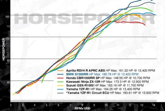 Динамометр показал, что GSX R1000 выдает впечатляющую максимальную мощность, 163 «лошадки» было зарегистрировано на скромных 12000 оборотах в минуту. Таким образом, Suzuki оказывается на равнее с Yamaha YZF R1, но все еще имеет на 10 лс меньше, чем Ninja и на 17, чем ракетный корабль BMW.