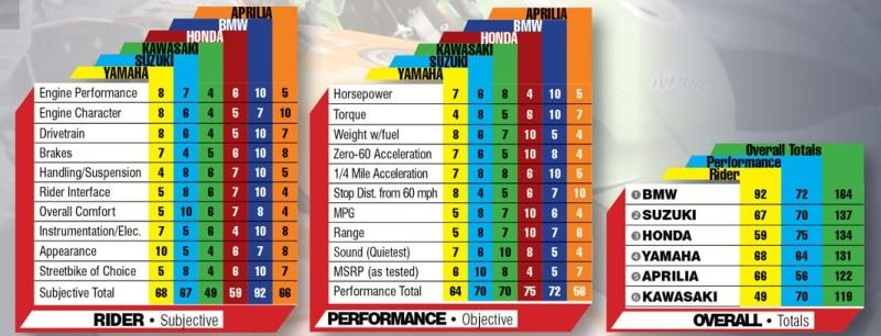 Быстрый, приятный и комфортабельный, высокотехнологичный BMW соединяется в себе механику и электронику. И хотя у него самая высокая цена, немец снова доказал, что он имеет самый лучший комплект характеристик для езды по улицам, именно поэтому он становится победителем нашего противостояния супербайков.