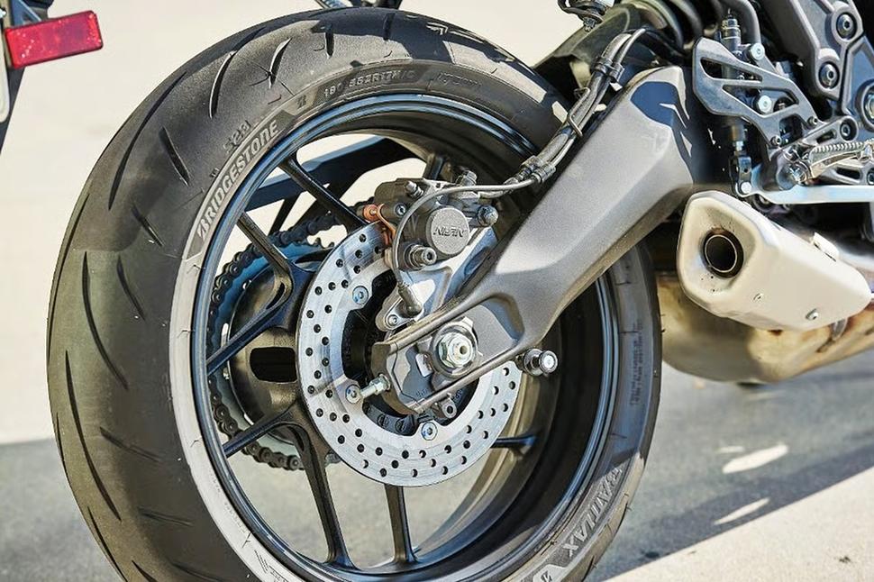 Помимо "единиц и нолей", Yamaha YZF-R7 получает новый маятник для лучшей жесткости и упрощения обслуживания. Более того, у байка полностью новое шасси с более прочной и жесткой стальной рамой. Новая перевернутая вилка KYB диаметром 41 мм по-прежнему имеет полные регулировки отбоя, сжатия и предварительного поджатия, но теперь лучше сочетается с измененным шасси. Желая добавить еще больше собственного снаряжения в среднекубатурный сегмент, Yamaha оснащает новый R7 коваными колесами SpinForged, которые снижают вес (на 4% по сравнению с моделью 2025 года) и момент инерции. Обновленные рычаги сцепления и тормоза предлагают 14 уровней регулировки с помощью удобного поворотного барашка.