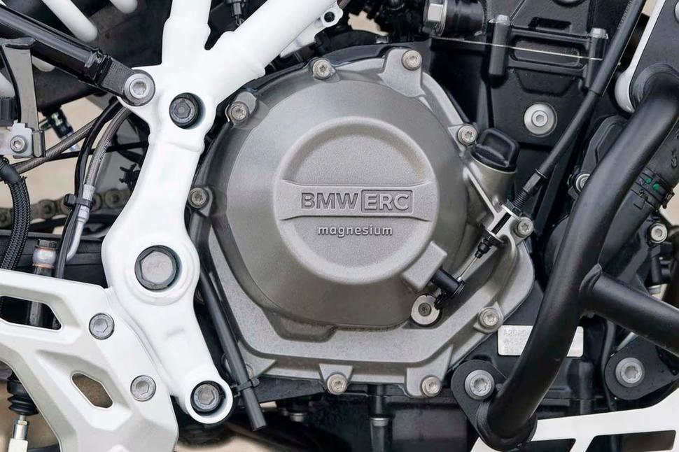 Одна фишка, которой нет ни на одном другом GS — это центробежное сцепление Easy Ride. Оно отменяет необходимость использовать рычаг сцепления для переключения, старта или остановки. Традиционное управление сцеплением работает только после того, как центробежная часть заблокируется. Оно также остается заблокированным при торможении двигателем или накатом на спусках, при этом работает функция slipper-сцепления. Только версия BMW F 450 GS GS Trophy оснащается Easy Ride в стандарте, но его можно установить на другие варианты как аксессуар. Магниевые крышки двигателя снижают вес.