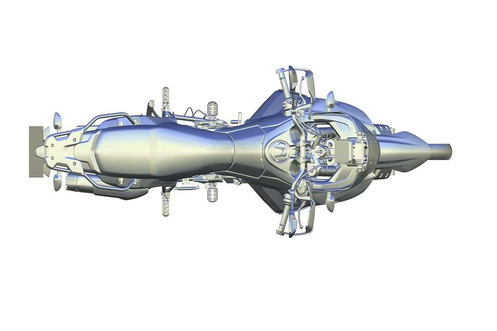 Причём сходство между ними не заканчивается только на моторе. Трубчатое стальное шасси MT-X практически идентично тому, на котором основан 790 Adventure, и серийный вариант 800 MT-X (скорей всего, он выйдет именно под этим названием) даже использует ту же конструкцию с двумя низко расположенными бензобаками. На рендерах видно, что баки-штаны не идентичны KTM-овским, но расположены там же и обладают теми же преимуществами, что и у 790 Adventure. Это и более низкий центр масс, облегчающий управление мотоциклом, когда баки полны, а также более длинное, плоское сиденье в кроссовом стиле с возможностью близко свести колени, плотно охватив мотоцикл в стойке, что было бы невозможно с более широким и высоким баком.