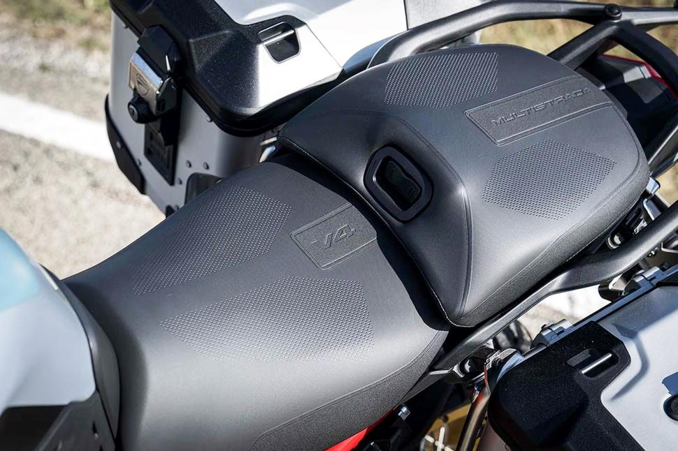 На европейском рынке стандартная комплектация V4 Rally включает электронные подвески и радар, а также тёплые ручки и систему контроля давления в шинах. В США Ducati предлагают только комплектацию Adventure Travel & Radar, которая дополнительно включает алюминиевые боковые кофры, подогрев обоих сидений и весь радарный функционал. Третий вариант комплектации для Европы называется Full Adventure, в него входит глушитель Akrapovic и карбоновое переднее крыло. Как и следовало ожидать от Ducati с начальной ценой 31995 долларов, качество сборки и отделки на высочайшем уровне.