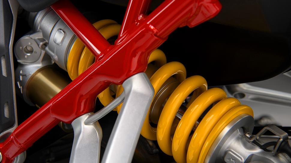 Мощность и отклик двигателя, трекшн-контроль, ABS, вилли-контроль - все они имеют целый ряд настроек, а плюс к тому можно настроить квикшифтер, дневные ходовые огни и пять вариантов работы полуактивных подвесок - вилки и моноамортизатора. Также можно отрегулировать предварительное поджатие пружины при помощи отдельной кнопки на левом пульте, с четырьмя ступенями или функцией автоматического выравнивания, при работе которой мотоцикл сам решает, сколько преднатяга добавить или убавить в зависимости от нагрузки.