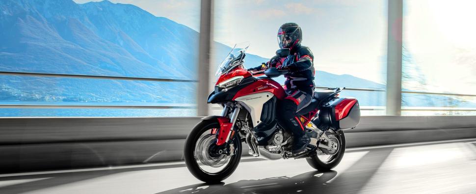В 2021 году Ducati Multistrada опять обновляется, в этот раз получив радар и флагманскую V-образную четвёрку. Но ему не просто пересадили V4 Stradale от Panigale или Streetfighter: новый двигатель по имени V4 Granturismo сохранил коленвал с обратным вращением и ход поршней в 53,5мм, как у Stradale, но диаметр поршней был увеличен на 2мм до 83мм, а кубатура соответственно выросла до 1158куб.см. Ещё более существенным отличием является отказ Ducati от любимого десмодромного привода клапанов, которые теперь имеют традиционные пружины. Среди других отличий - уменьшенные впускные и выпускные клапаны, более низкие обороты отсечки (11500об/мин) и более длинная финальная передача (16/42), чем на Streetfighter, у которого первая передача короче, а шестая - выше.