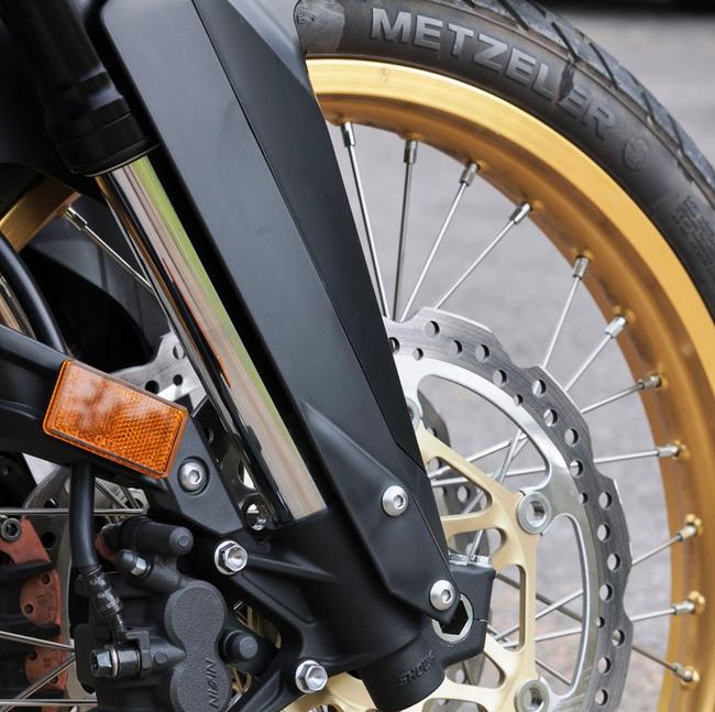 Непонятно при этом решение оснастить Honda Transalp камерными шинами. Да, это важно для действительно внедорожных мотоциклов, которые ездят на низком давлении, и из маркетинговых соображений камеры ставят на многие турэндуро. Но учитывая, что большинство таких мотоциклов на грунт почти не выбираются, а ремонтировать проколы камерных шин - настоящее наказание, отказ от бескамерной резины - это не слишком умный ход. Так что спицовка под бескамерную резину - лучший вариант, в который при необходимости можно установить и камеры с буксаторами.