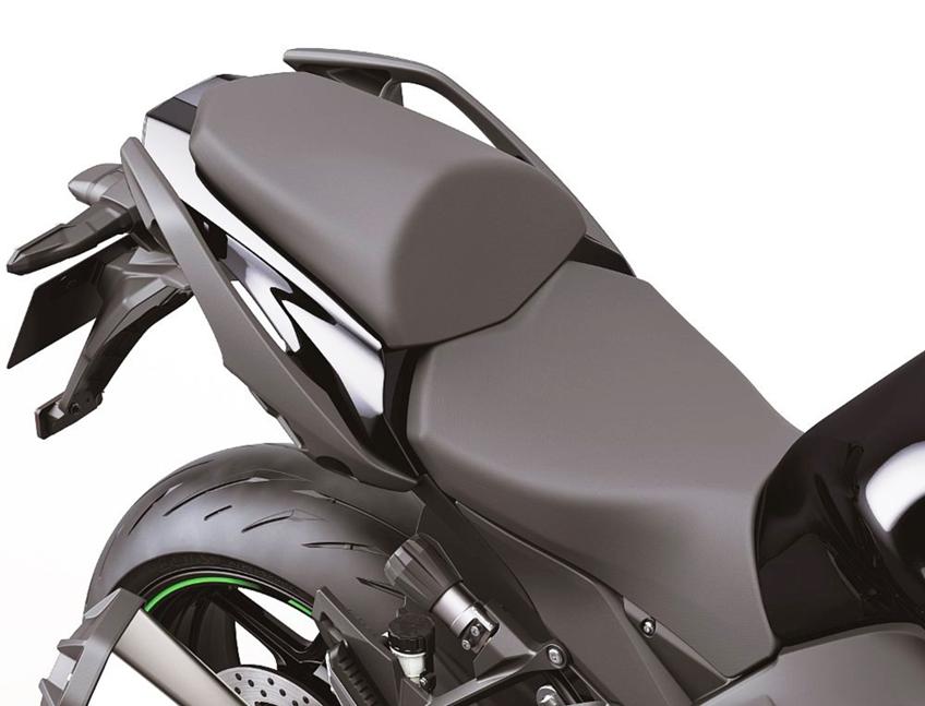 В сиденье используется другая набивка как водительской, так и пассажирской части, и Kawasaki утверждает, что новая пена намного более удобна. По очевидным причинам рассказать об этом с уверенностью я не могу, но заявленная высота сиденья увеличилась на 5 мм, так что есть основания надеяться на то, что оно стало более мягким, а ногам будет чуточку просторнее. Возможно, что именно из-за более высокого сиденья ветровик установлен под более крутым углом, а ещё он имеет четыре положения вместо трёх.