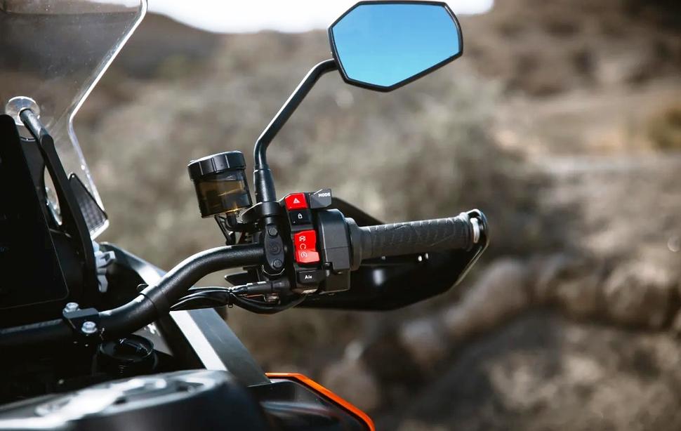 Система AMT чрезвычайно эффективна при реальной езде. В мануальном режиме передачи на KTM 1390 Super Adventure S EVO 2027 переключаются аж четырьмя равнозначными способами: обычным рычагом под левую ногу, лепестками на левом пульте, движением ручки газа в обратную сторону для переключения (так же, как на многих мотоциклах отключается круиз-контроль) или при достижении отсечки, когда TCU автоматически включает следующую передачу. Эта функция, кстати отключается. В большинстве случаев переключение происходит мгновенно и ничуть не хуже, чем при использовании хорошо настроенного квикшифтера. Если перед остановкой забыть переключиться вниз, то система сделает это автоматически вплоть до первой передачи. Но главное - это ощущения: в ручном режиме система чем-то напоминает видеоигру, и привычный к гонкам с "переключением передач" кнопками мозг моментально осваивается. Подрулевые лепестки на левой стороне руля - это просто находка для тех, кто почему-то не может или не хочет пользоваться рычагом коробки.